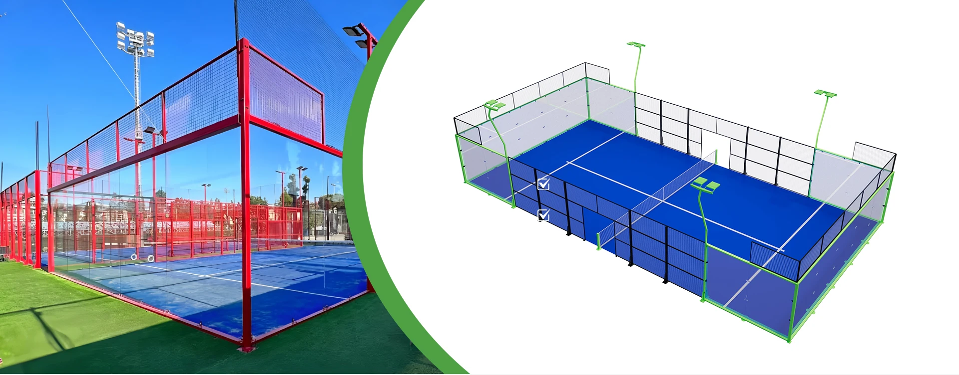 Durável Europa Padrão Panorâmico Padel Court Cancha De Padel Pingpong Table Tennis Products