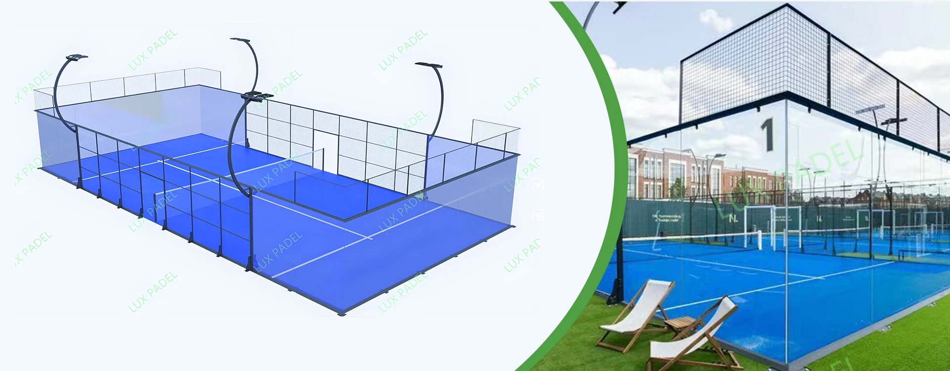 O novo design super panorâmico da quadra de Padel LUX PADEL X361 Wpt luz LED quadra de Padel profissional que são pilares de ferro grandes